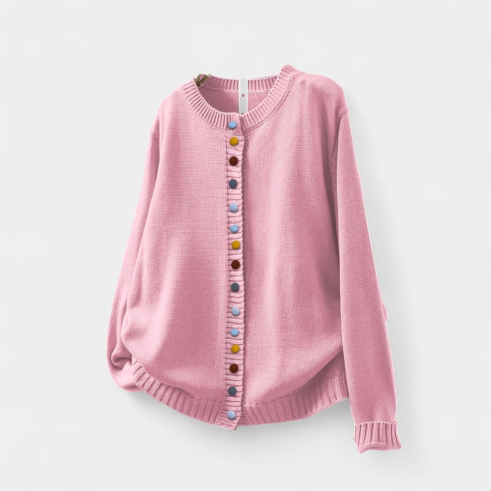 Kardigan Klára združuje udobje in brezčasni stil. Zaradi ohlapnega kroja ga je prijetno nositi ves dan, dekorativni gumbi pa mu dodajajo ženstven in edinstven pridih. Odlično se prilega tako za prosti čas kot tudi za delo ali večerne trenutke s prijatelji.