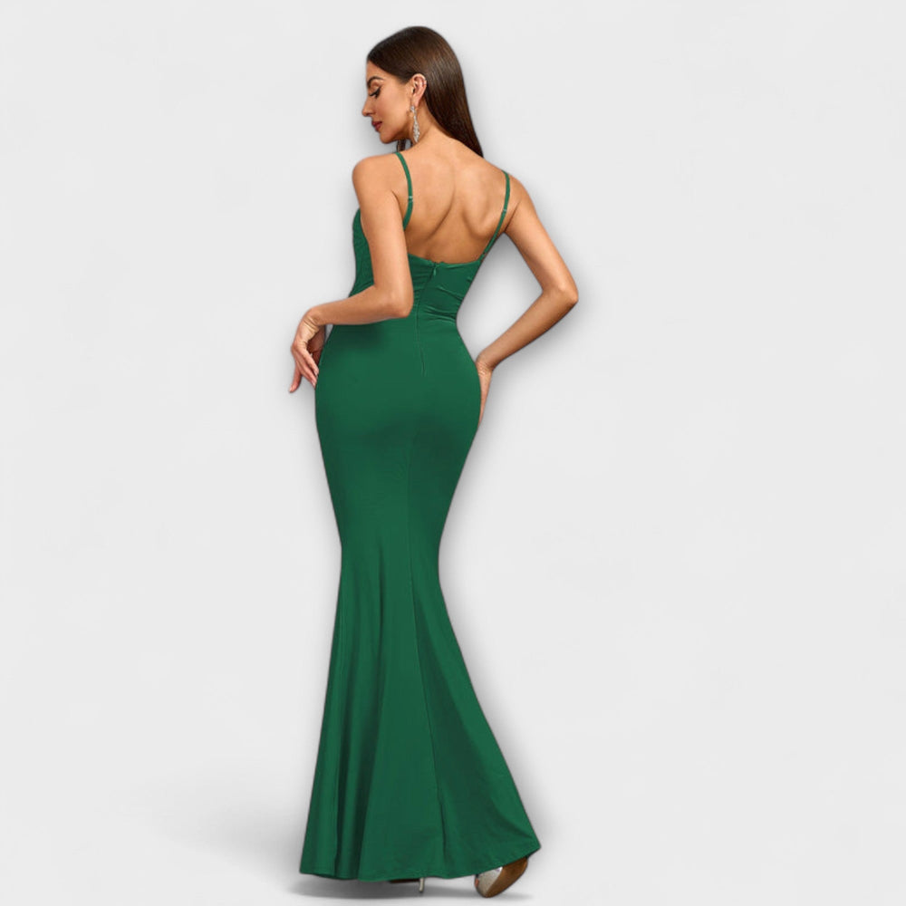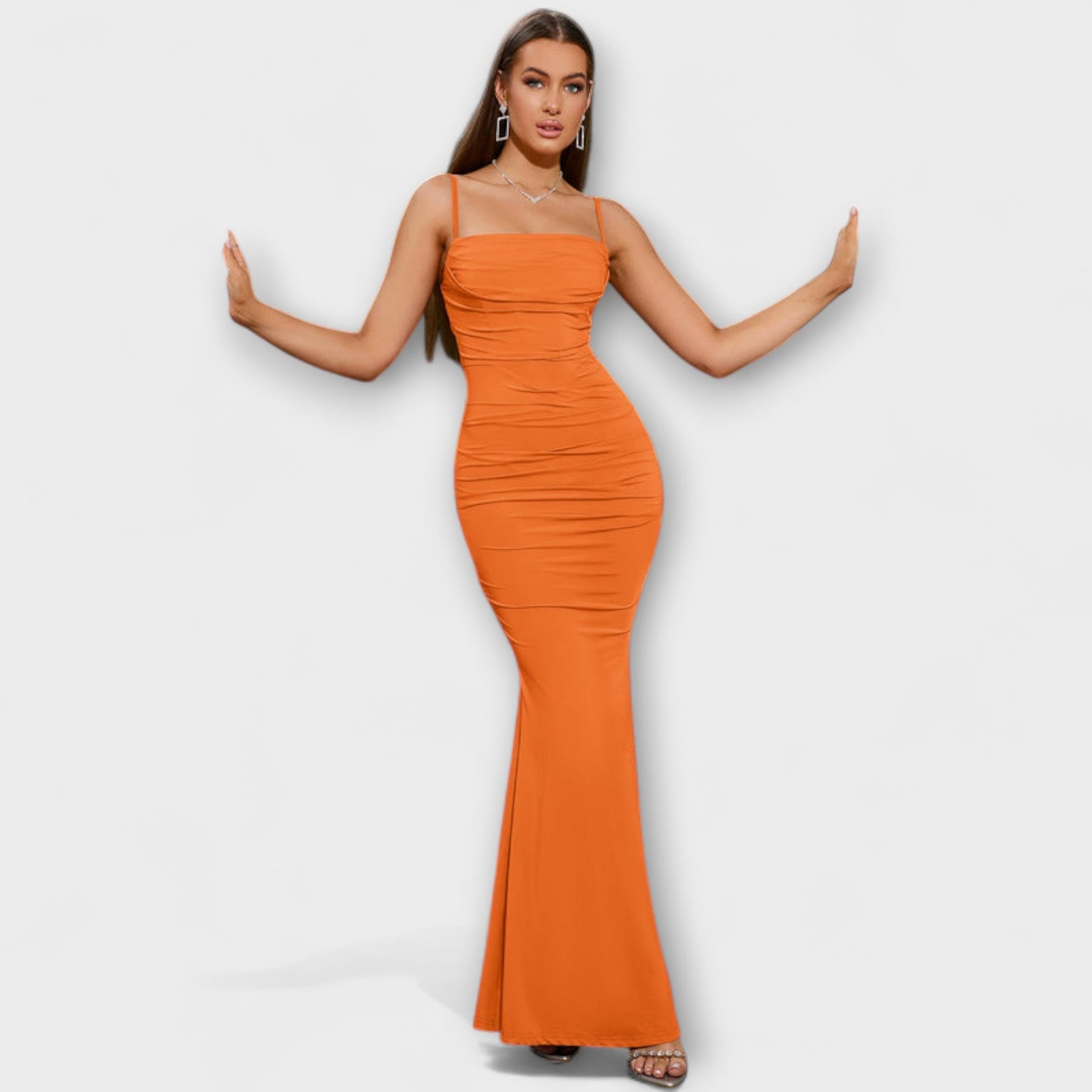 • Izrez na tankih naramnicah: Brez napora eleganten in idealen za tople večere.