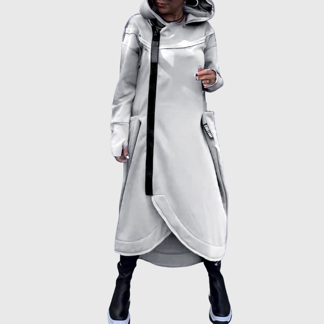 Bunda Adriana je idealna izbira za ženske, ki iščejo izviren dizajn in funkcionalen kos za vsako vreme. Zaradi asimetričnega zadrge, praktične kapuce in udobnega kroja bo postala nepogrešljiv del vaše garderobe. Popolnoma združuje sproščen stil z modernim pridihom – bodisi v mesto, na pot v službo ali za prosti čas.